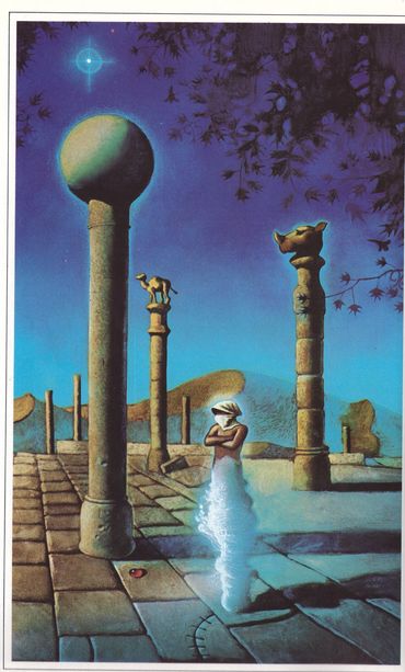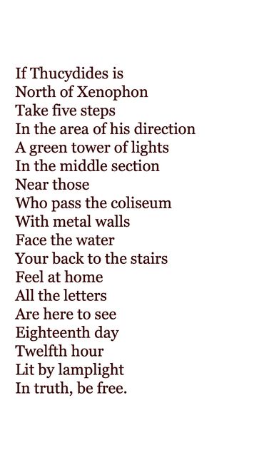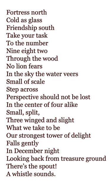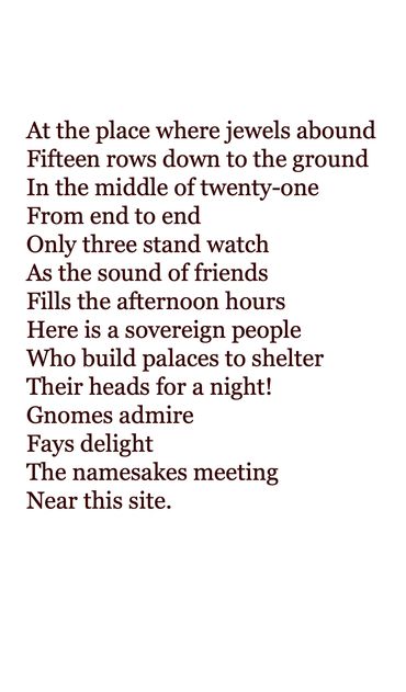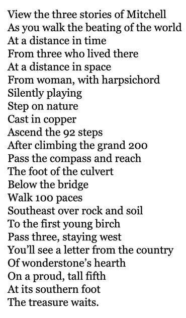 Please note, there is some debate over the Milwaukee and Montreal pairings. I choose to pair Painting 9 with Poem 8 due to a hint in the Japanese edition of the book that indicates "as you walk the beating of the world" is a person's name starting with DRUM. The "legeater" lamppost (seen in Painting 9) located at the Mount Stephen Club in Montreal is located on Drummond Street. DRUM + MONDE is a very elegant solution to "as you walk the beating of the world." Not only is Drummond a person's name starting with drum, but Monde means world in French, which is the official language of Québec.